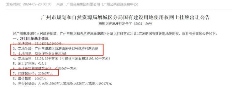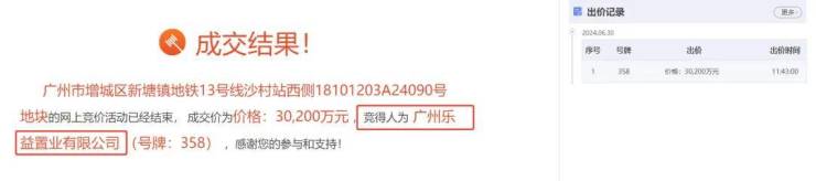 备受关注的沙村地铁口商业地块开拍!最终,在只有一家企业举牌的情况下,被广州乐益置业有限公司以底价3.02亿拿下!