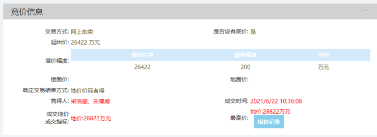 2021年6月,梁浩潮、朱耀威以总价2.88亿元竞得高明西江新城2.3万平商住地,折合楼面价5018元/平。