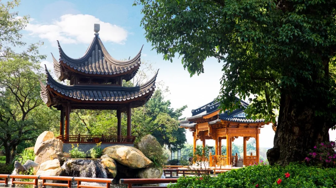 江面、栈道、古树、奇石、亭台楼阁,构成了园林文化中的艺术珍品,宛如珠江畔的一幅国画长卷。