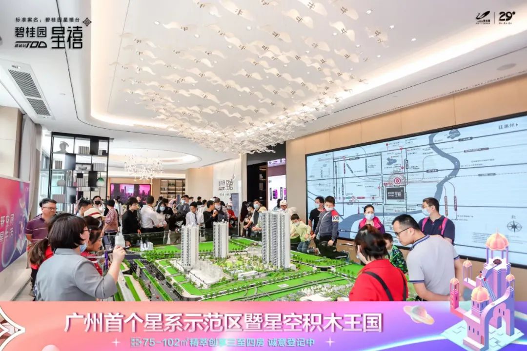 与城市共星动!在进行增城TOD发展联盟启动会、星空积木王国、星梦极光灯光秀三个活动环节之后,碧桂园·星禧示范区正式对外开放!吸引不少购房者亲临参观。