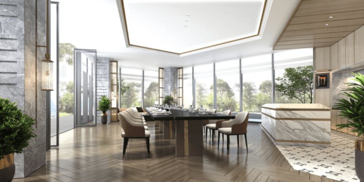 新世界星辉打造了媲美豪宅尺度的挑高约9.8米的星级酒店式大堂,还定制了各类公区硬装之外,满足人们对精奢品质生活的期待。