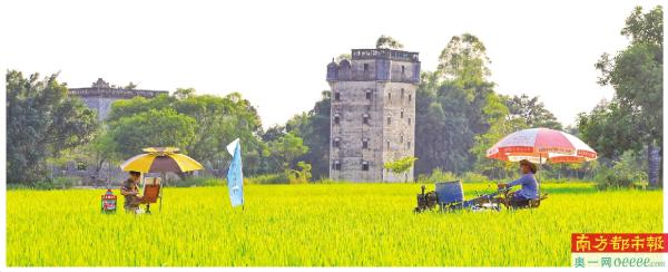 广东开平市塘口镇自力村碉楼,九月金黄稻谷飘香。 南都记者 谭庆驹 摄