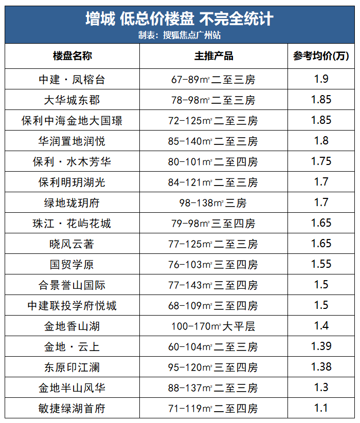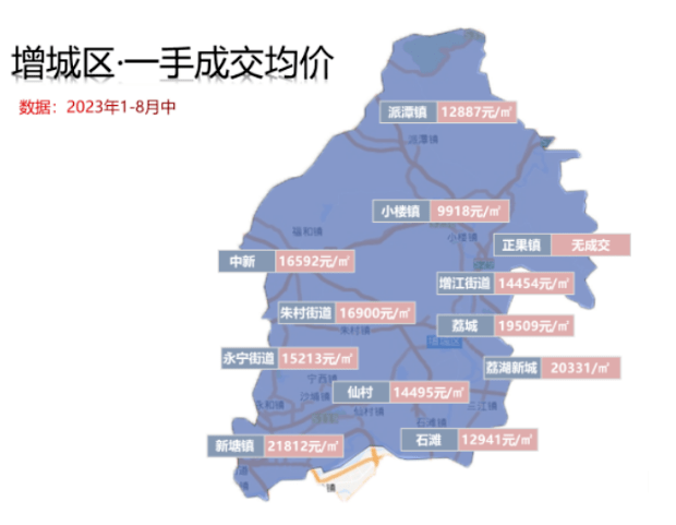 除临近主城区的新塘以及发展核心的荔湖新城房价尚在2万/㎡以上,其余板块均是1字头。