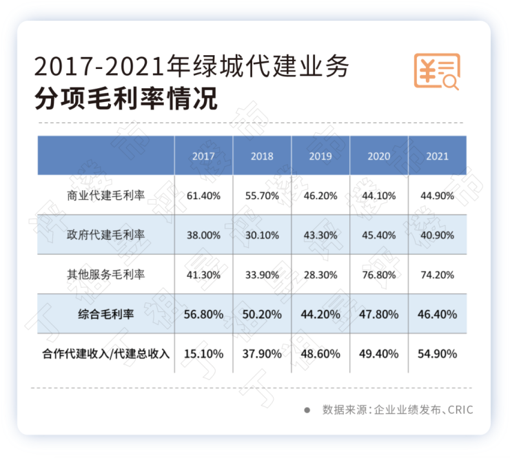 从其代建业务的毛利率来看,其综合毛利率达46.4%。