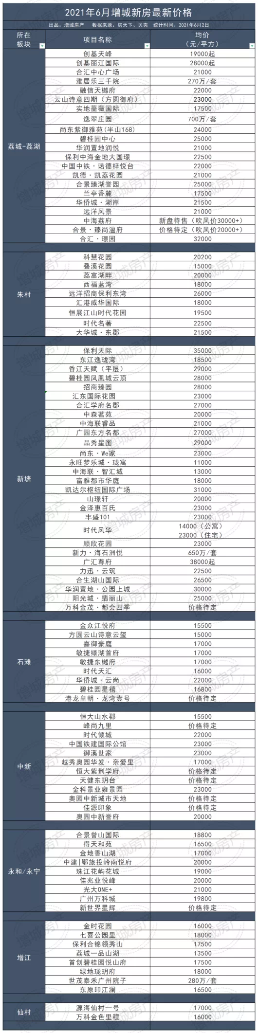 如果以上商场未来能顺利开业,届时附近楼盘无疑将迎来极大的利好,也是证明了商业的繁荣。值得一提的是,根据房产君整理的6月新房均价,新塘房价略有上涨。一手房中,香江天赋复式在售3-3.1万/平;广汇尊府高达3.8万/平起,甚至冲高到4万/平;品秀星图、华润置地公园上城,横跨至3万+/平;碧桂园云顶也从2字头,开始重回3万+/平了;剩下的合生湖山国际,也都站稳2.6万/平。