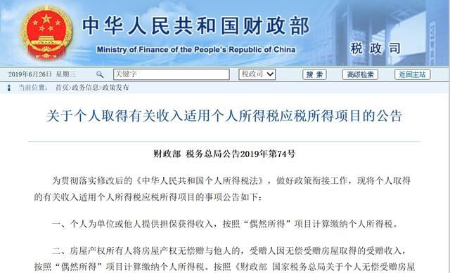 2019年6月13日财政部 税务总局公告2019年第74号发文
