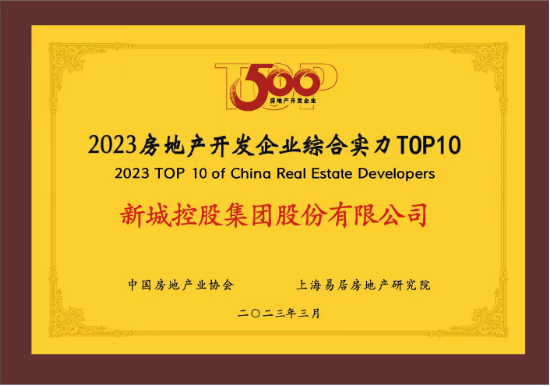新城控股凭借稳健的经营业绩和双轮驱动的战略优势,新城控股荣获 “2023房地产开发企业综合实力10强”,连续五年跻身十强;