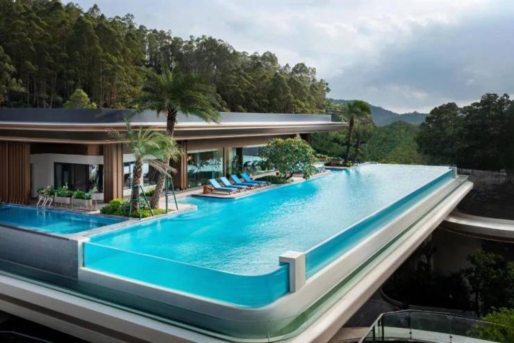 要知道,如此奢华的无边际泳池,因其造价高昂且工艺繁琐,在广州市面上并不多见,通常仅在那些千万级豪宅或高端酒店的配置中出现。