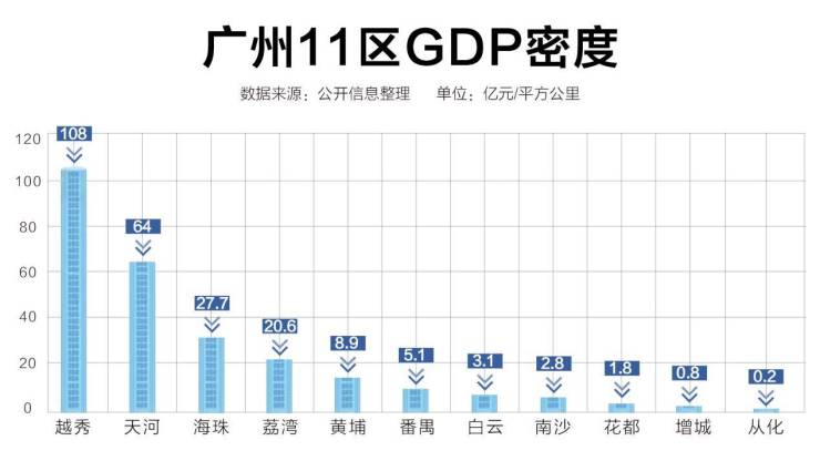 也就是说,全市只有面积最小的越秀,做到了“每寸土地都富得流油”。