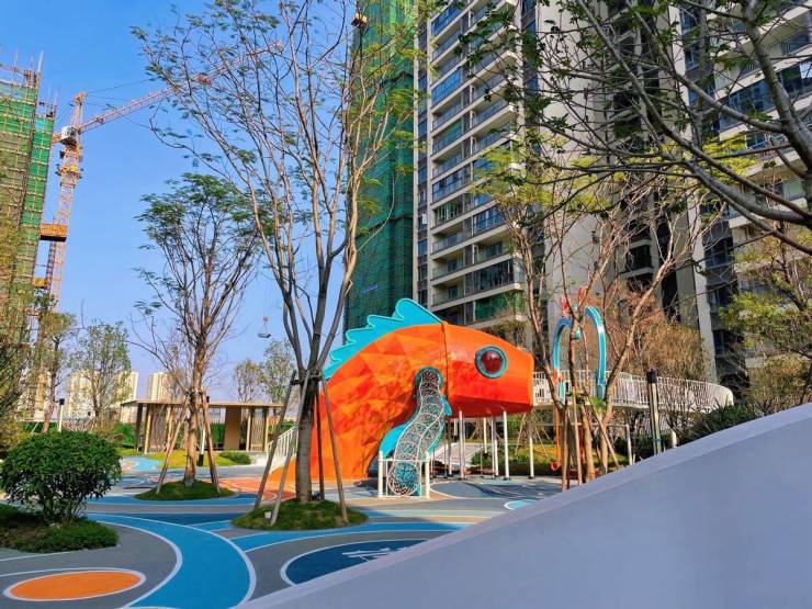 在舒适宜人的社区景观里,与父母感受自然,看孩子嬉戏玩耍,同邻里谈天说地,静享清闲时光。