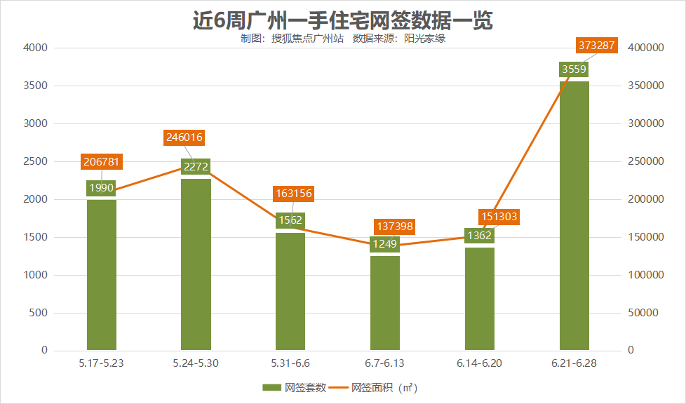 据搜狐焦点不完全统计,6月(6.1-6.28)广州一手住宅网签7719套,总面积达824756㎡,整体上仅近优于2月。