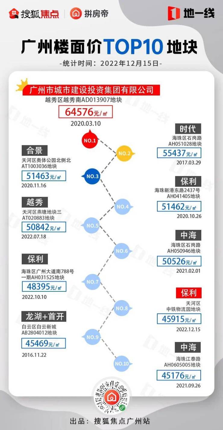时至今日,虽然广州标杆楼面价TOP10地块座次屡有刷新,后来居上者更是气势冲冲,但依旧无法撼动该地块的王者地位。