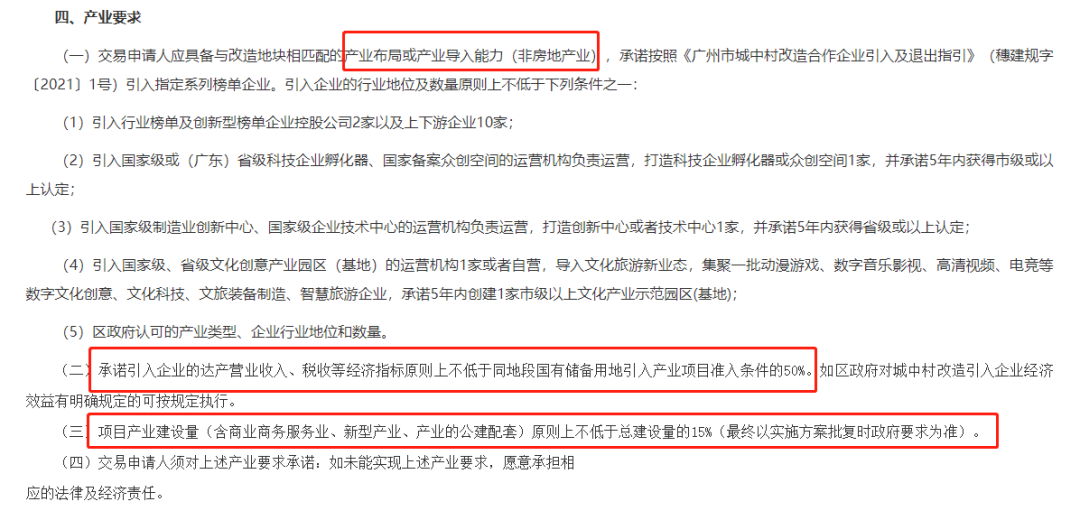 具备产业导入能力交易申请人应具备与改造地块相匹配的产业布局或产业导入能力(非房地产业),引入企业的行业地位及数量原则上不低于下列条件之一: