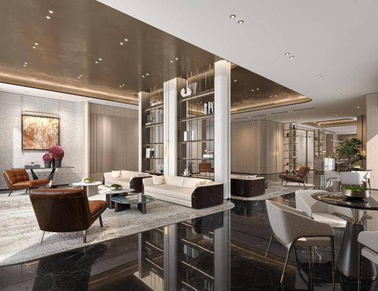 度假式双泳池会所 :项目配备天河少有的双泳池 + 双会所,约 9 米酒店式首层大堂,为业主提供高质量的悠闲生活,满足会客、健身、亲子等多种需求。