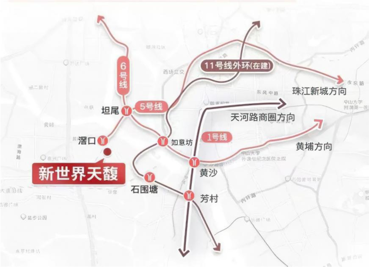 新世界·天馥位于黄金地铁5号线的起点滘口站,一轨直通珠江新城、金融城等核心CBD。对于业主而言,通勤上班、出游闲玩都是极大的便利。