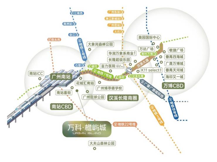 汇聚15轨立体交通枢纽,通过乘坐2号线、7号线,22号线首通段,不仅可以4站通海珠、4站到万博、6站达珠城。今年的22号线(后通段)开通后,可实现5站直达白鹅潭CBD;广佛环线(东环线)开通后,去往白云机场的时间将大幅缩短。