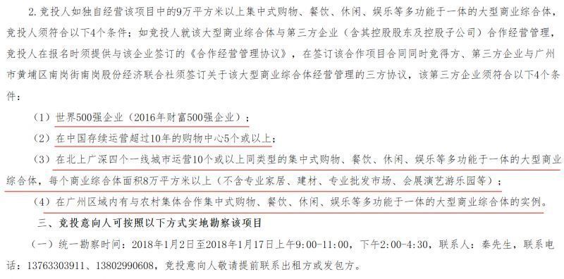 2.竞投人如独自经营该项目中的9万平方米以上集中式购物、餐饮、休闲、娱乐等多功能于一体的大型商业综合体,竞投人须符合以下4个条件: