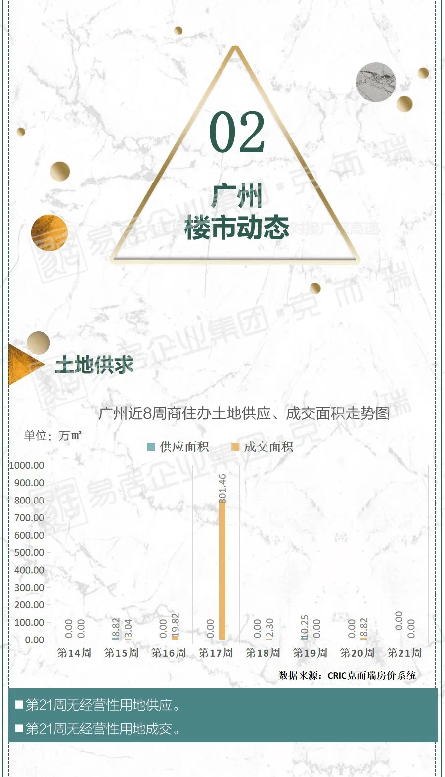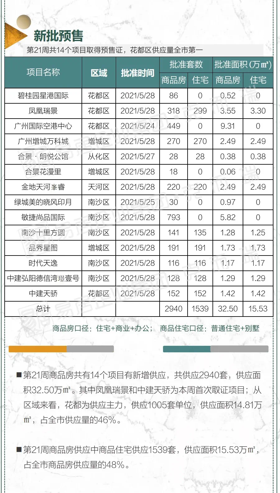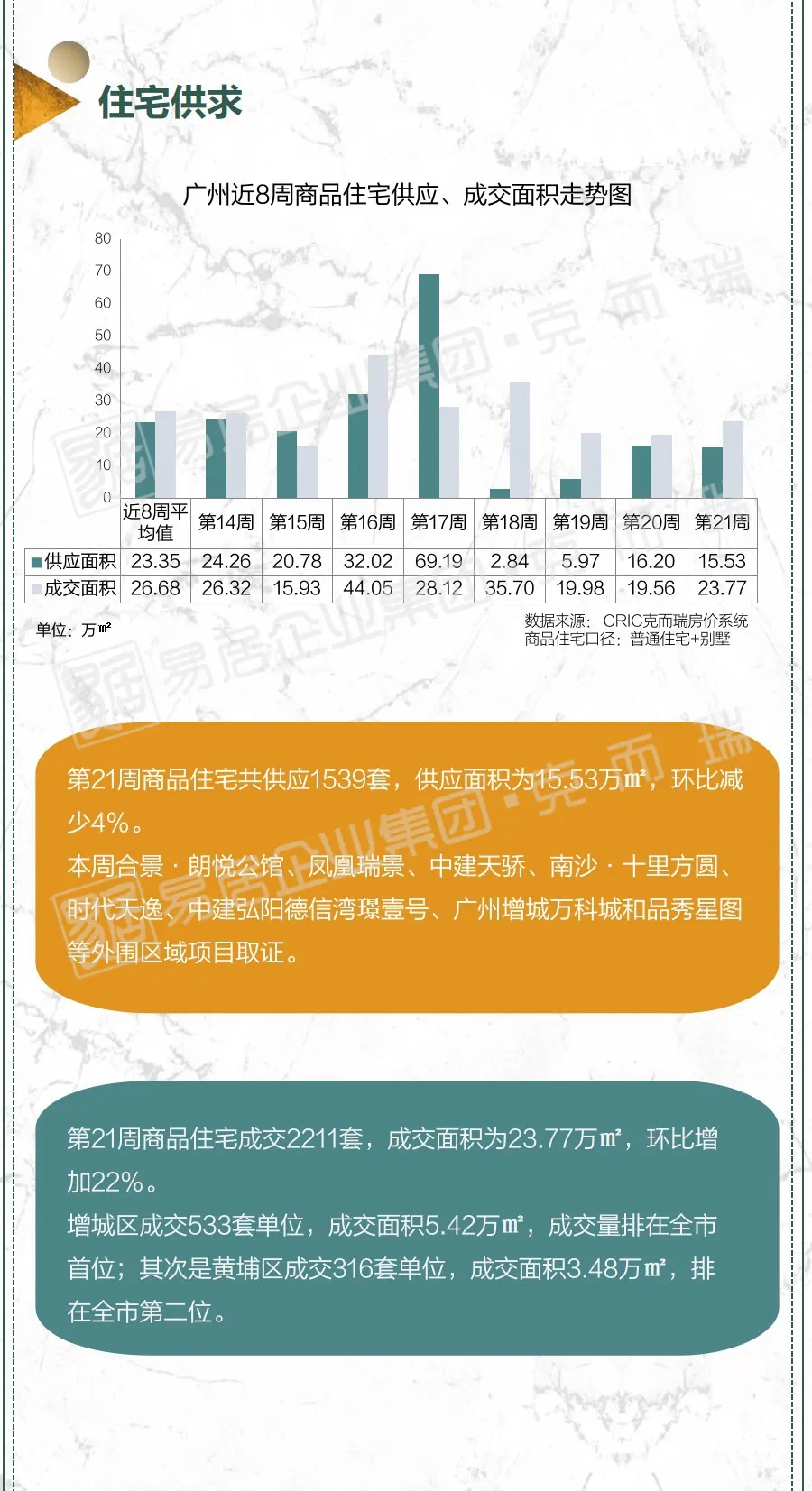 据统计,第21周(05.24-05.30)广州新房共供应1539套,供应面积为15.53万㎡,环比减少4%。