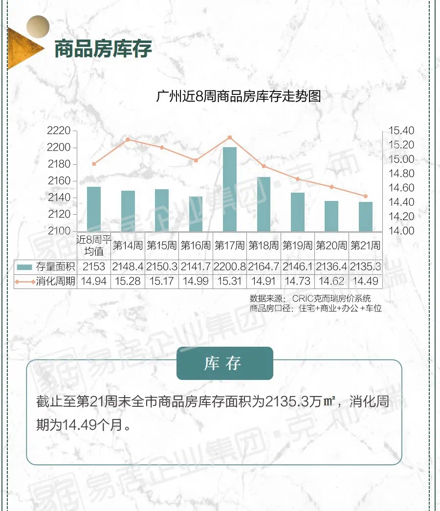 据统计,进入5月份以来,在广州新房供应多次减缓,且周次成交量不低的背景下,新房库存逐渐消化。