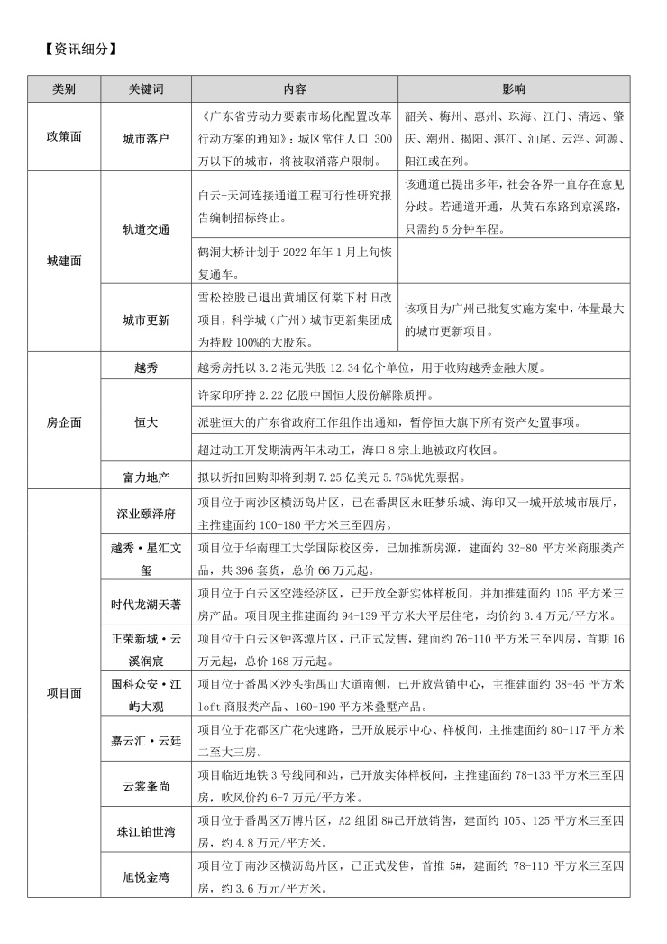 政策方面,广东省人民政府印发《广东省劳动力要素市场化配置改革行动方案的通知》,将完善落户机制。落实取消城区常住人口300万以下城市落户限制的有关政策,试行以经常居住地登记户口制度。探索居住证互认制度,在除广州、深圳市外的珠三角城市率先探索户籍准入年限同城化累计互认。