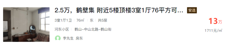 二手房方面,鹤山、山城虽不见上述新闻中提及的总价低至几千块的房子,但房价是确实低。
