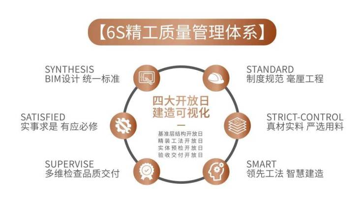 ● 精工匠筑,6S精工质量管理体系:作为珠江实业旗下重要的房地产开发运营平台,珠实地产专注于“精研品质人居,重构空间价值“。将建造众多城市地标施工经验归纳成品质为先的专有体系与标准——6S精工质量管理体系,从选材、建造、防水、精装等八大类系统性施工严格把关,对过千个细节反复打磨,力求筑就坚固安全美观实用之居所,实实在在的为客户打造幸福好房子,力争赢得客户的信赖。