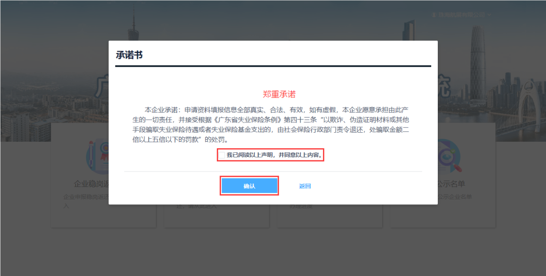 2、确认承诺书:仔细阅读《承诺书》后,勾选“我已阅读以上声明,并同意以上内容”,点击确认。
