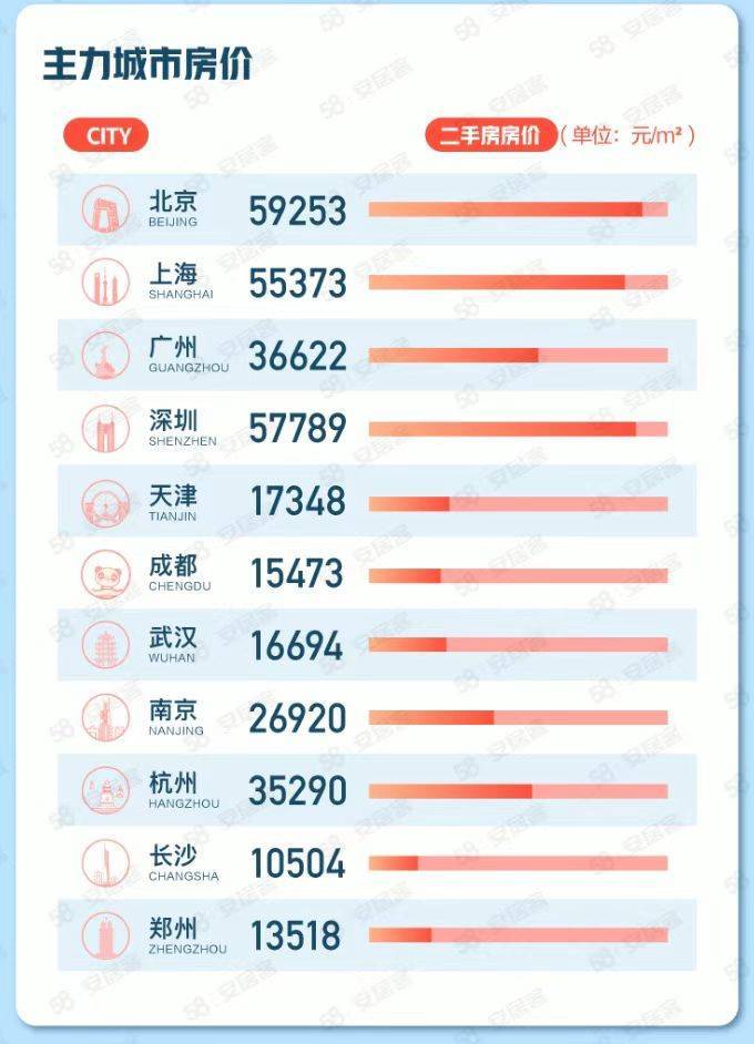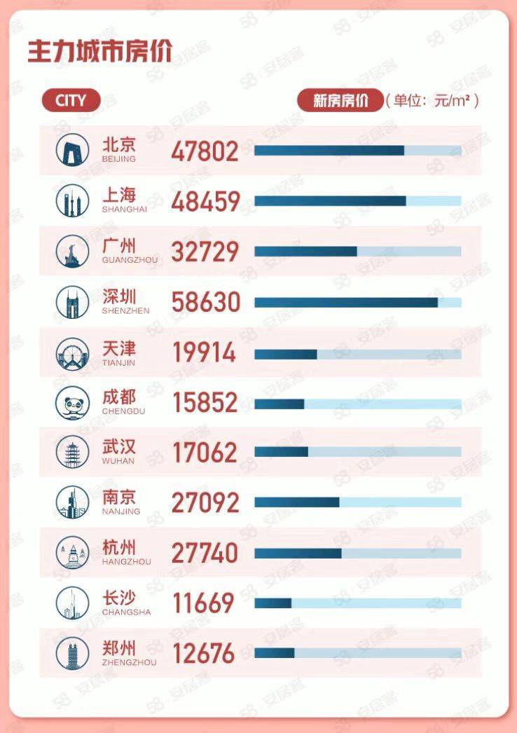 一线城市中,深圳新房线上均价为58630元/平方米,上海和北京新房线上均价分别为48459元/平方米和47802元/平方米,广州新房线上均价为32729元/平方米。