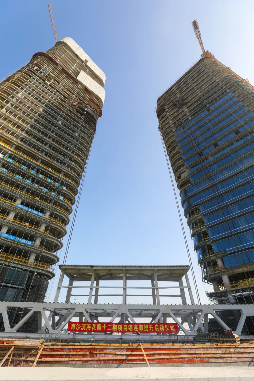 越秀国际金融中心空中连廊正式启动提升!!