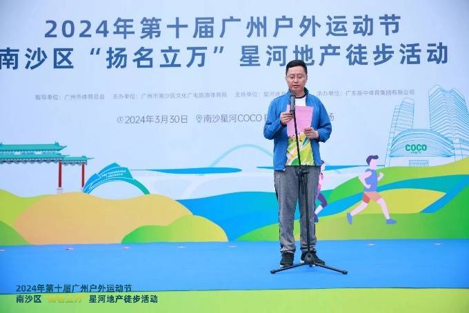 3月30日,2024年第十届广州户外运动节南沙区“扬名立万”星河地产徒步活动在欢声笑语中圆满举行。此次活动吸引了广州市体育局群众体育处处长林红军、广州市群众体育指导中心副主任林伟强、南沙区文化广电旅游体育局局长鲁辉、星河地产华南公司总裁陈德才等众多领导嘉宾的出席,他们不仅共同见证了这场全民体育盛事的热烈启动,并与选手们一同感受了南沙新区的魅力,更通过实际行动支持了南沙区体育事业的发展。