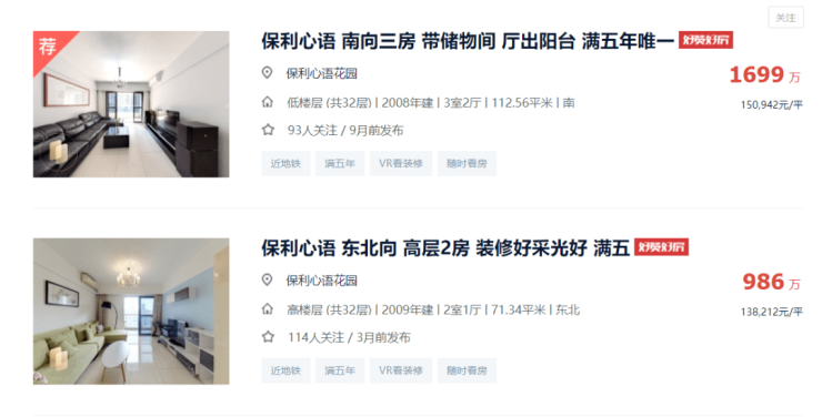 以保利心语花园为例,依据链家网挂出的真实价格,该小区挂牌价多数在13万/平-16万/平的区间内。但在房源内页,则清晰显示了其交易参考价96957元/平。