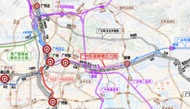 回到广州东站,规划中的新建广州东至新塘五六线设计时速200公里,将在西端通过广州枢纽衔接广湛、贵广、南广、广珠、深茂铁路及京广通道,沟通珠三角核心地区与粤西、西南等地;东端承接京九通道,连接江西、安徽等中东部片区,并与沿海铁路相连,通达东南及华东沿海地区。开通之后,广汕高铁的大量始发车也可实现从广州东站发车。