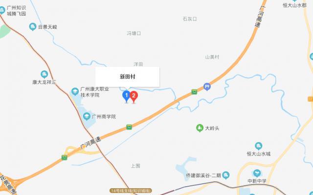 新田村位于广河高速与东部快速路交汇处,地处知识城知识孵化区(南区)东侧,紧邻知识孵化、国际教育园区。交通便利,穗莞深城际纵向穿越,设 1 个城际站平岗站,毗邻 3 个地铁站、镇龙站、镇龙北站和镇龙西站。