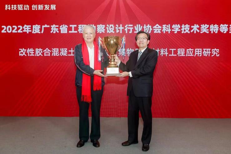 会中还举行了2022年广东省工程勘察设计行业协会科学技术奖一等奖、特等奖颁奖仪式以及科技进步奖获奖项目分享。获得特等奖的是原全国政协委员、军民融合提案人、航母辽宁舰引进者徐增平先生带领的Cl&G团队与清华大学共同研究的《改性胶合混凝土规程与改性集物胶合材料工程应用研究》。据悉,该科研新成果应用在生态修复,环境治理,无废城市,灾害防治,海洋修复、国防建设等六个方向,对实现绿色低碳,自然资源持续循环利用颇有助益。