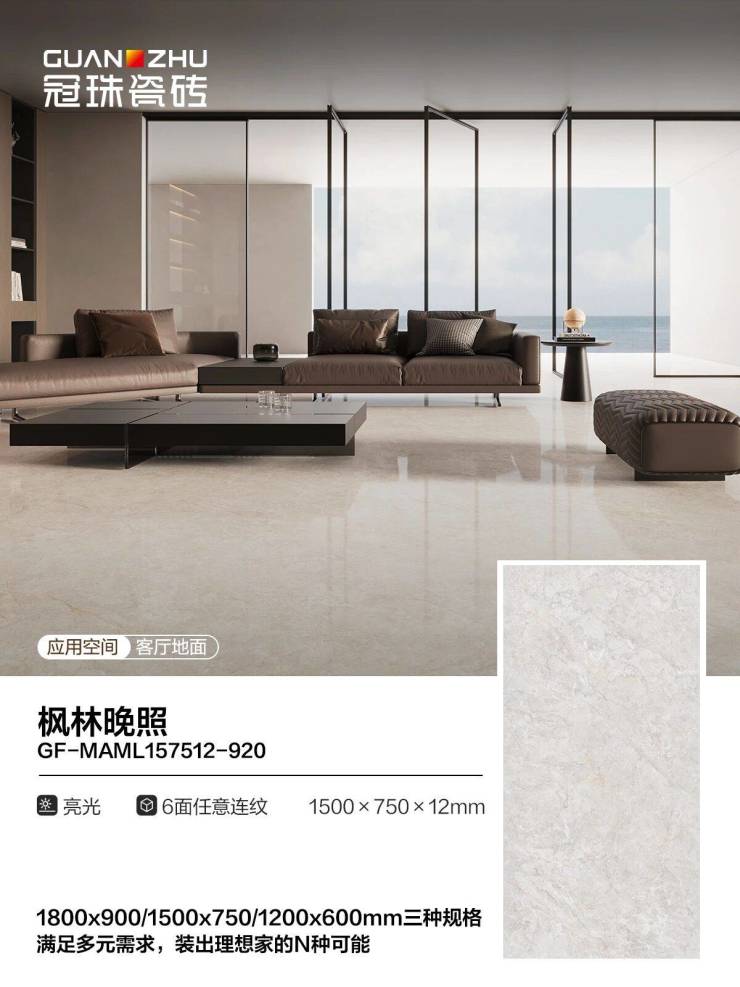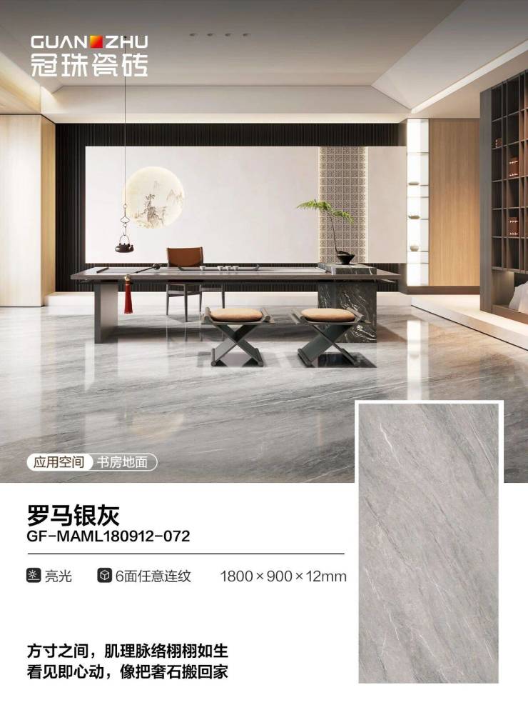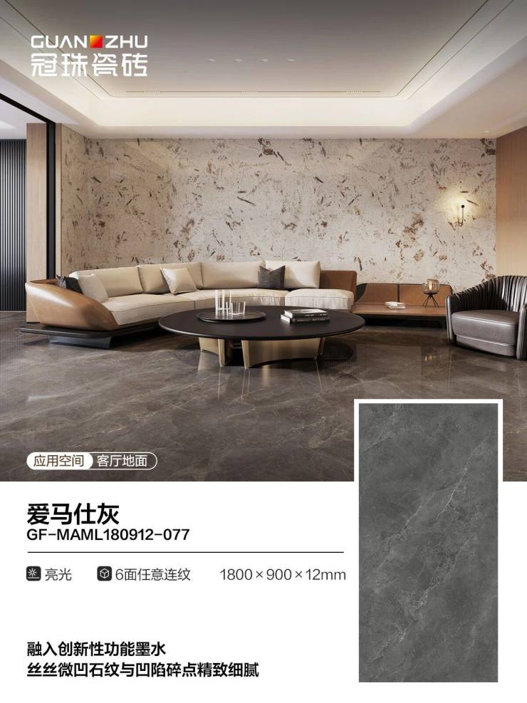拥有1800x900/1500x750/1200x600mm 三种主流规格,花色齐全,可按空间大小灵活配砖,满足多元场景应用需求。