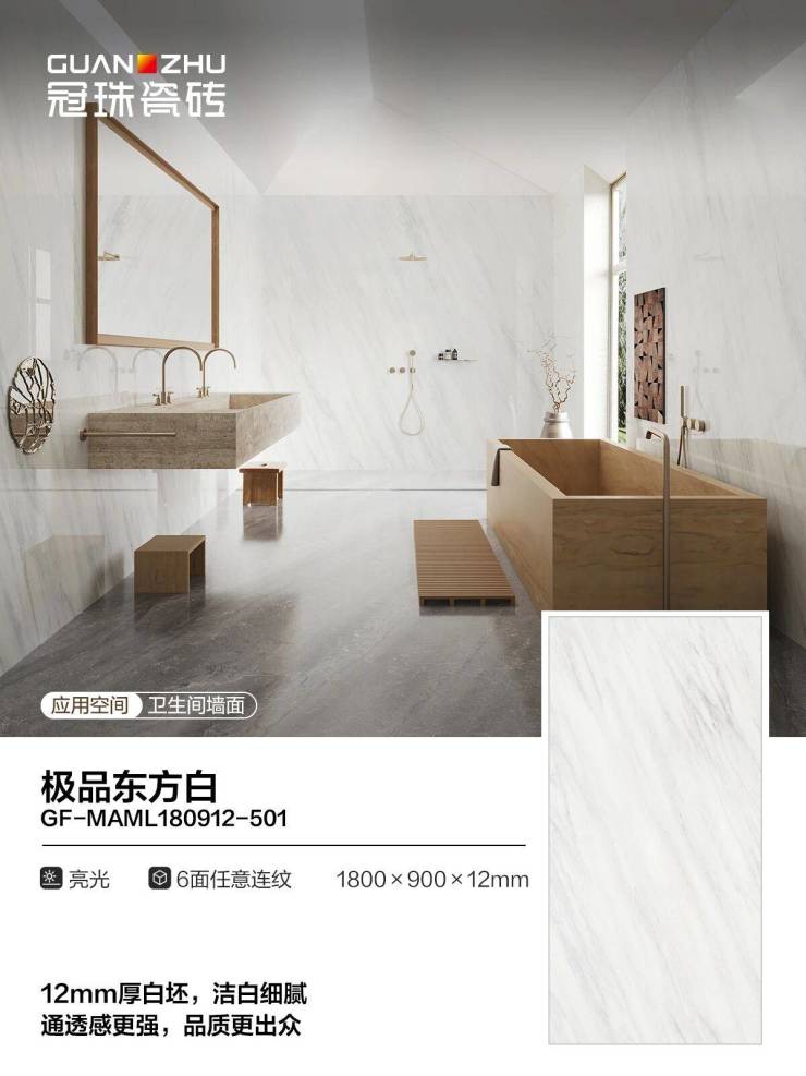2️⃣坯体厚度升级,12mm厚白坯拥有更优的抗折强度,满足工装、家装全场景应用。