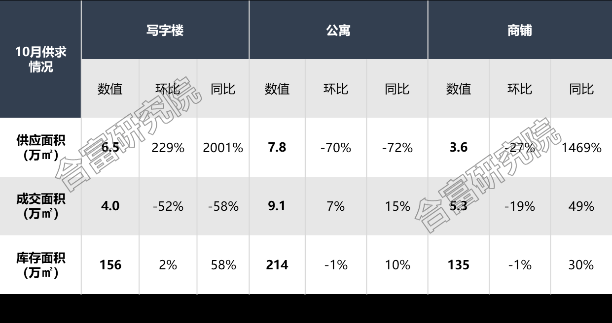 合富大数据显示,凭借“十一”黄金周的促销,10月广州公寓成交量环比同比均有所上升,而商铺也有显著同比升幅;但写字楼对比有大宗交易的9月份,10月市场成交量下降超50%。