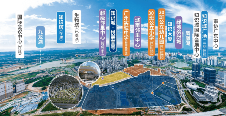 作为知识城建面约80万方配套学府大城,占地约25.67万平,建面超70万平,住宅共有67栋,包括19栋小高层,24栋叠墅及24栋高层住宅。