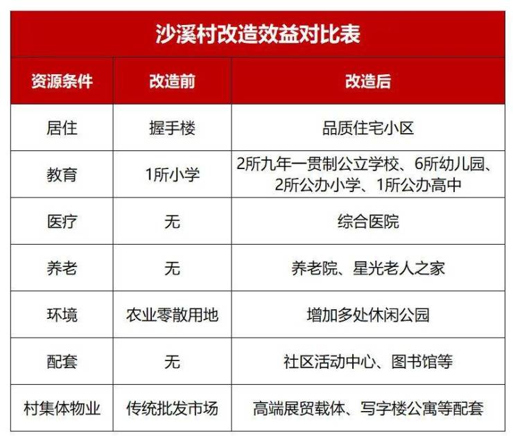 一旦沙溪村改造完成,不仅是城市面貌得到改善,公建配套进一步丰富,人居环境得到优化,而且无论是村集体物业租金,还是村民个体收益都将水涨船高。
