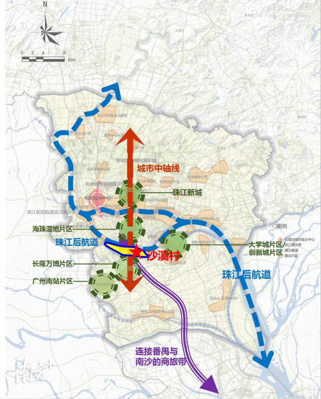 摊开地图,沙溪村地理位置优越,地处番禺洛浦沙滘岛,三面环江,与沥滘隔江对望,紧邻地铁18号线沙溪站。