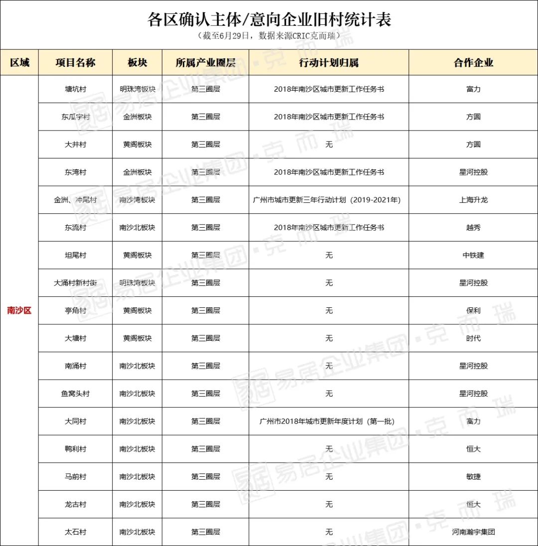 统计到,南沙区合计39村纳入旧改,其中近一半已确认合作主体,截至发稿时间,南沙区合计17村确认主体,其中星河控股旗下参与该区4个旧改项目,参与度较高。