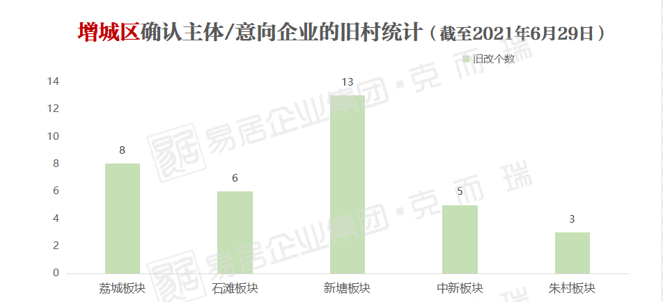 值得一提的是,新塘板块,作为增城新房成交量排名前列的板块,在旧改方面也力争全区排名前列,目前该板块合计13村确认主体或意向企业。