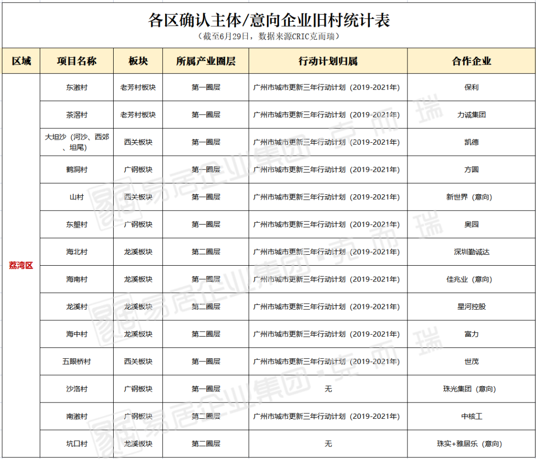 克而瑞监测到,荔湾区有18村列入旧改地图,其中14村已确认主体或意向企业。