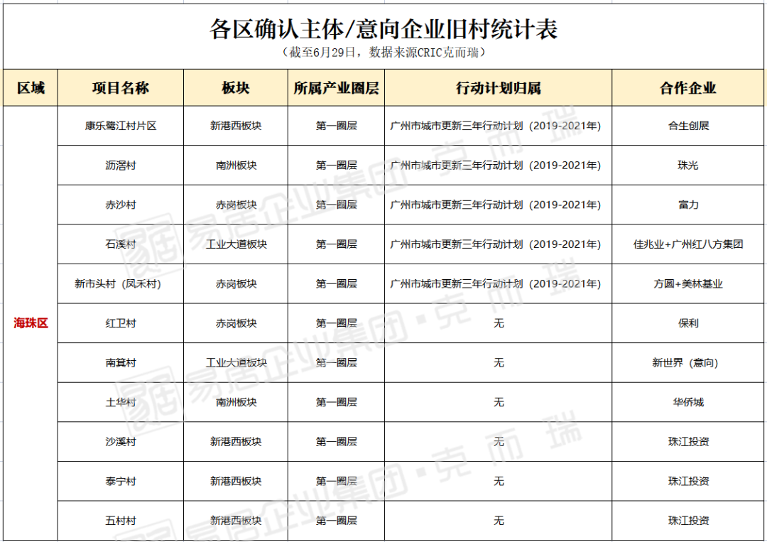 统计到,目前海珠区总计24村列入旧改地图,其中确认主体或意向企业的总计11村。