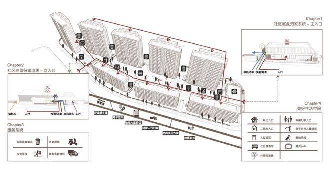 超前的社区底盘规划概念,为整个社区打造活力引擎,支撑和安装社区建筑、室内、景观及各部件。聚焦围墙内外业主高频流线敏感点的体验,沿着6大流线,锁定重点空间模块,进行品质提升。6大流线设计、7种车的分流、6类人的管理,实现全维流线规划管理。同时对接智能时代的社区新需求,着眼于业主的一个个日常生活细节,充满烟火气和温情。