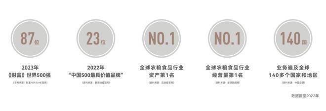 央企中粮,1949年成立,与共和国同龄。经过70余年发展,成为全球布局、全产业链、拥有最大市场和发展潜力的农业及粮油食品企业,2023年《财富》世界500强排名第87位。