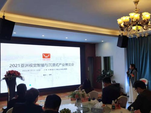 广东鸿威国际会展集团有限公司视觉智能与沉浸式产业博览会项目组总监杨彩为参会成员介绍了展会的详细情况并汇报了目前的工作进度。