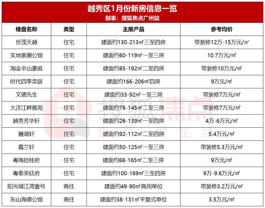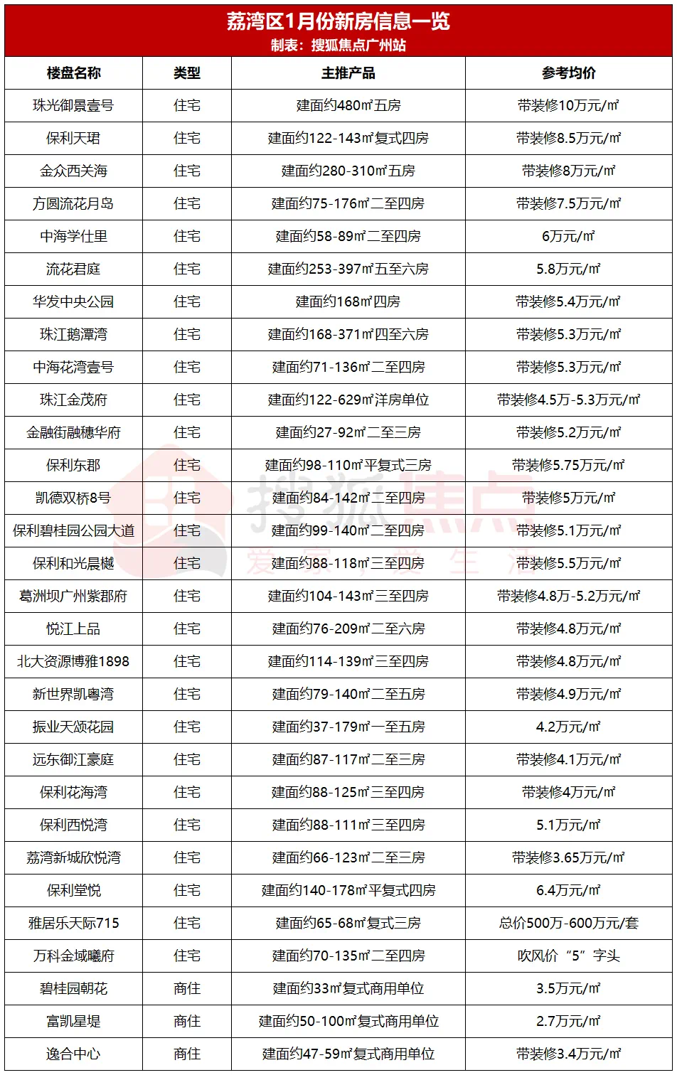 据搜狐焦点不完全统计,当前荔湾区在售或待售新盘约28个,售价集中在4万-7万元/㎡区间。