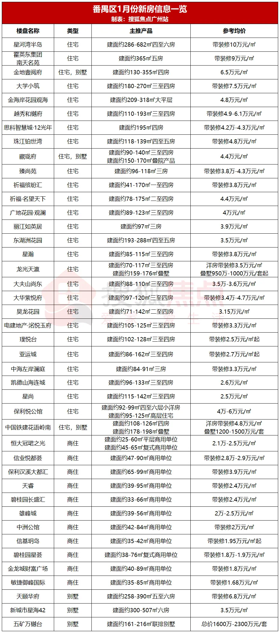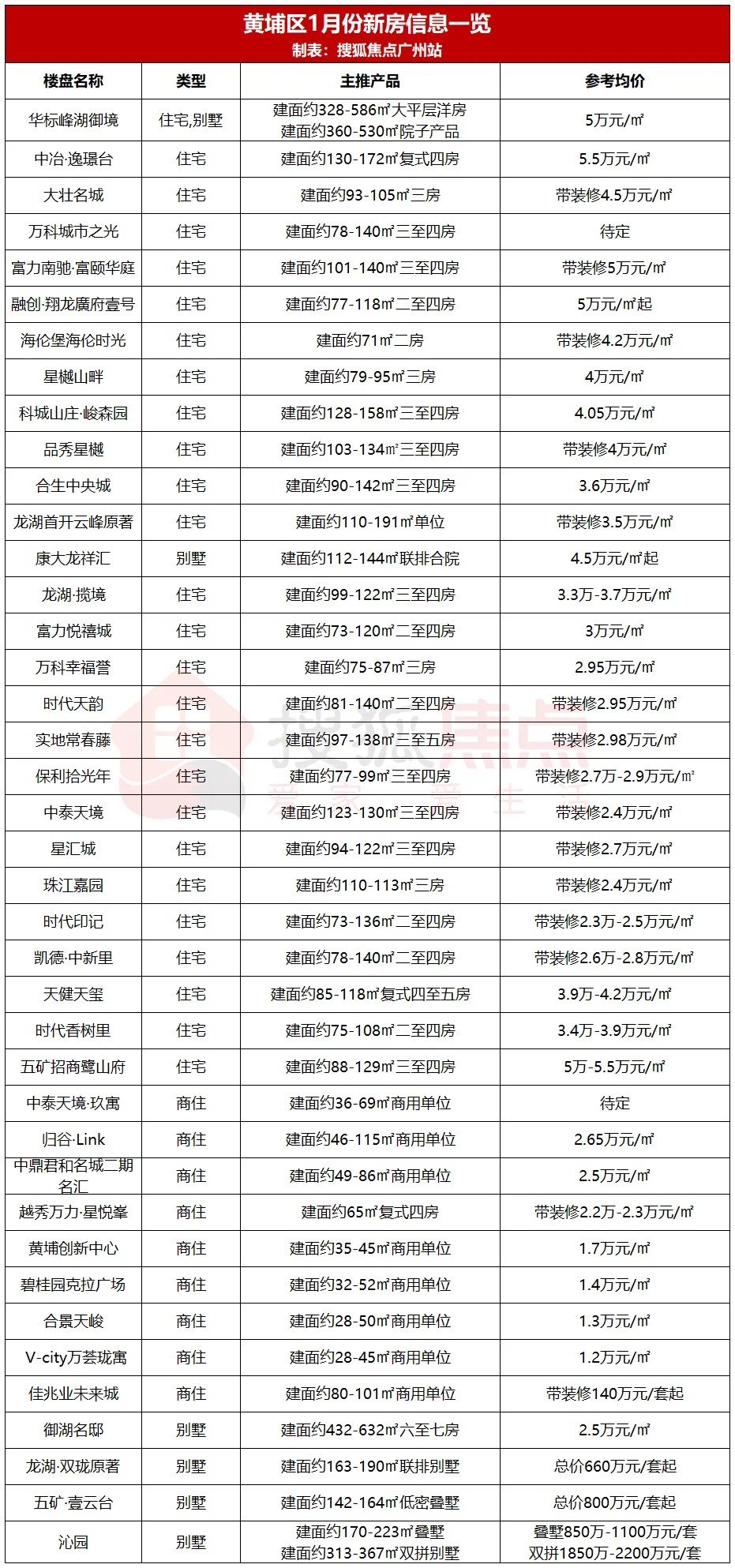 在片区规划和旧改并进,未来黄埔的发展潜力自然不言而喻。当前,黄埔区在售新房约40个,住宅的均价集中在2.3万-5.5万元/㎡区间。
