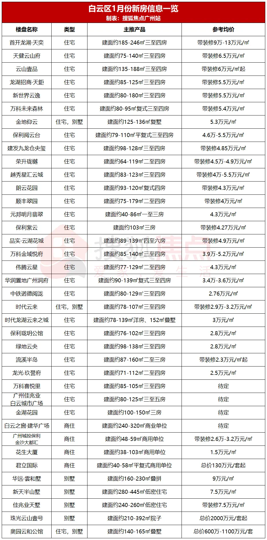 其中,时代龙湖云来之城、中铁诺德•阅泷、龙光玖·誉府等“北部四镇”盘价格集中在3万元/ m²上下,对比白云区传统板块5-5.5万/ m²均价,对刚需朋友更加“友好”。